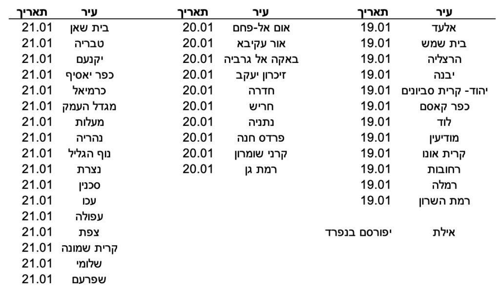 חלוקה לפי ערים. עודכן 18-01-26
